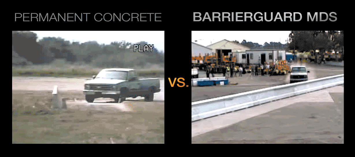 An alternative to portable concrete, the BarrierGuard 800® MDS is a safe, lightweight, FHWA TL-3 approved barrier.